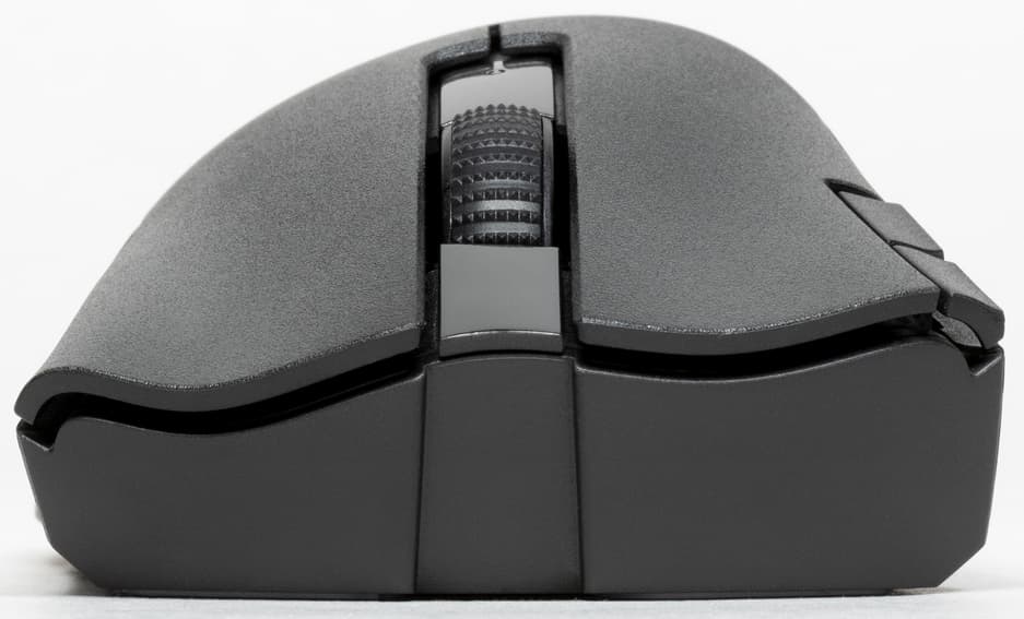 В итоге пространство за колесом прокрутки теперь пустует. В целом, корпус мыши спроектирован для удобного хвата всей ладонью правой руки. При попытке сменить хват на «когтевой» в руке ощущается дискомфортное напряжение.