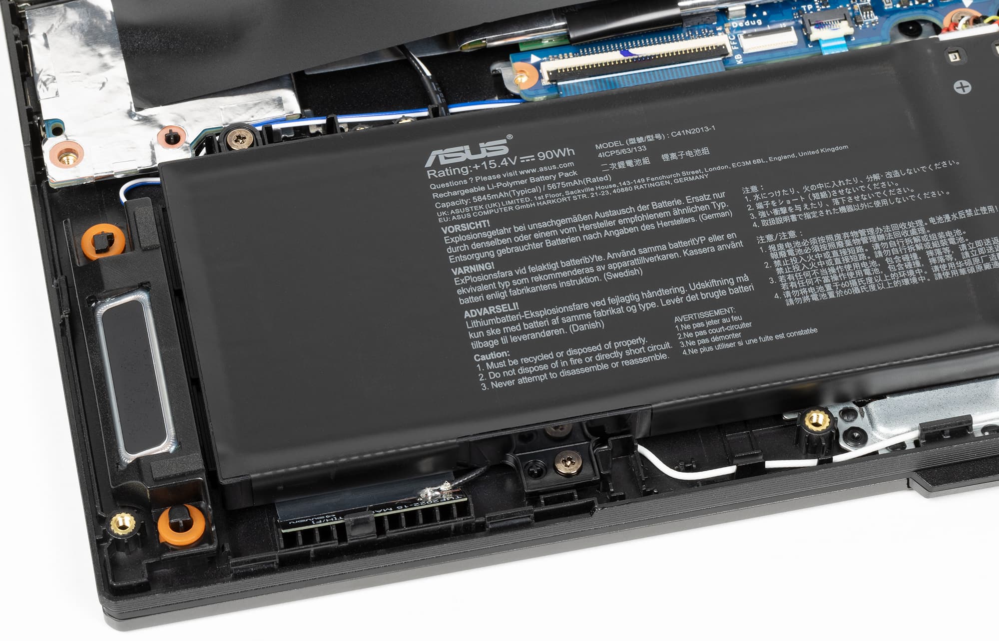 Как и у многих современных игровых ноутбуков, аккумуляторная батарея здесь имеет очень внушительный объем 90 Вт·ч. Однако длительность работы от батареи даже при работе с текстом и просмотре видео не очень впечатляет по сравнению с офисными ноутбуками без дискретной видеокарты (6 и 4 часа соответственно). А уж про игровое применение ноутбука вдали от розетки вообще говорить не приходится: можно рассчитывать на час максимум, и это при сниженной производительности видеокарты.