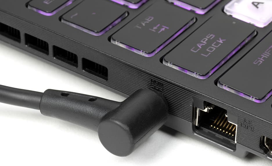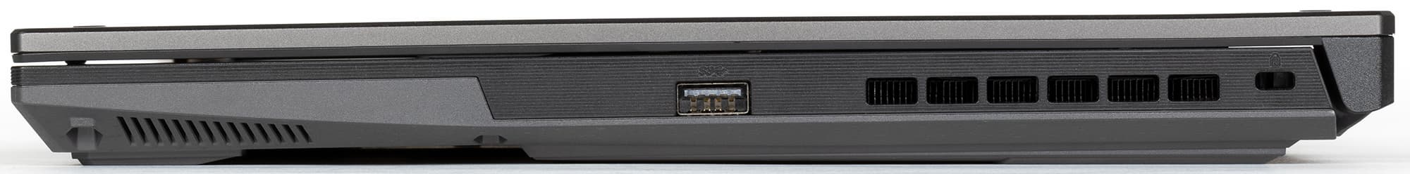 Справа есть лишь один USB3 Gen1 (Type-A) и отверстие для кенсингтонского замка, которое нечасто можно встретить в игровых ноутбуках.
