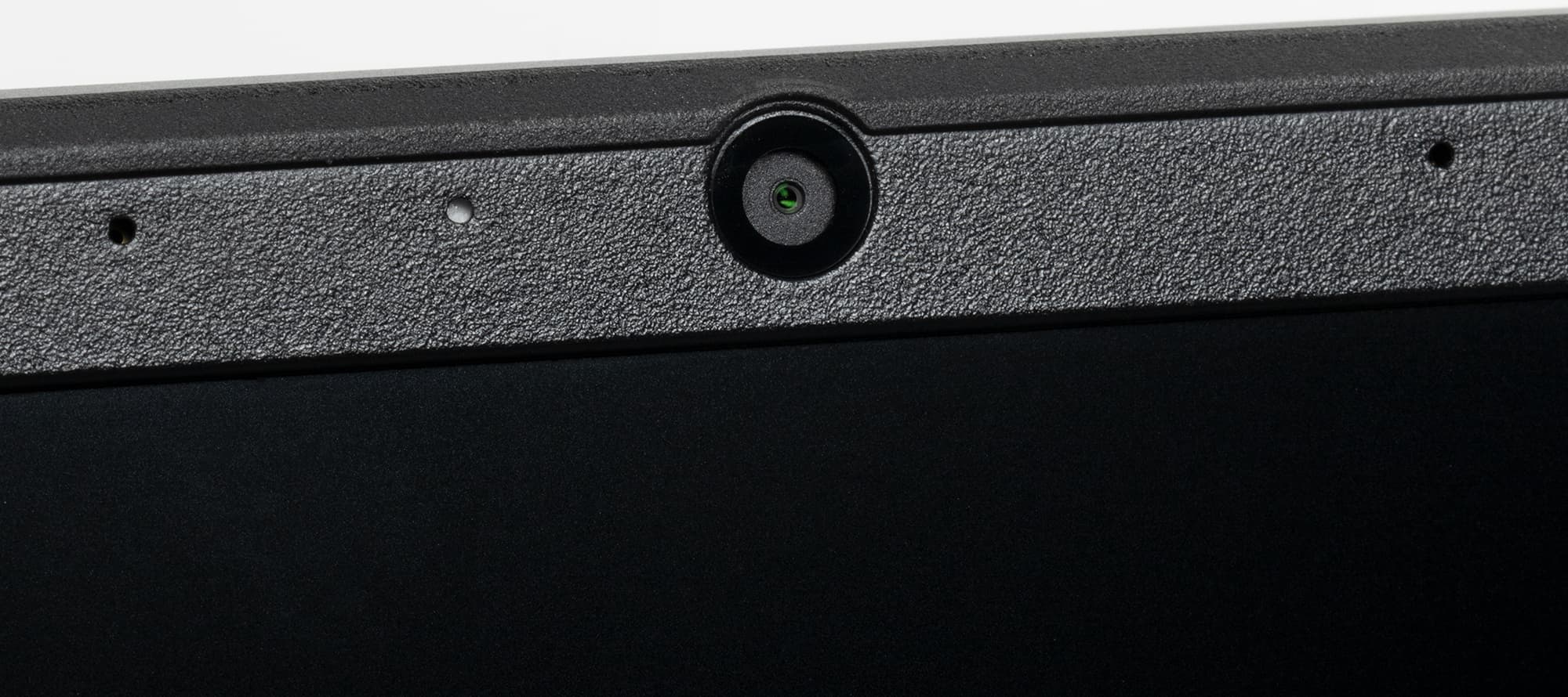 Рамка справа и слева имеет ширину 6 мм и возвышается над поверхностью дисплея на 2 мм. Экран полуматовый, 17,3 дюйма по диагонали, представлен матрицей IPS (разрешение 1920×1080) с частотой развертки 144 Гц и откликом 11 мс (измерено в iXBT.com) — это вполне достойно игровых приложений. Сверху в рамку экрана (здесь ее ширина составляет 11 мм) встроена миниатюрная веб-камера с разрешением 1080p, а справа и слева от нее располагаются отверстия микрофонов и светодиод, загорающийся синим при активации камеры.