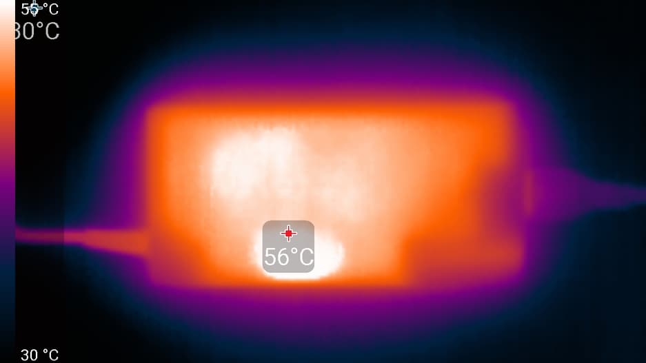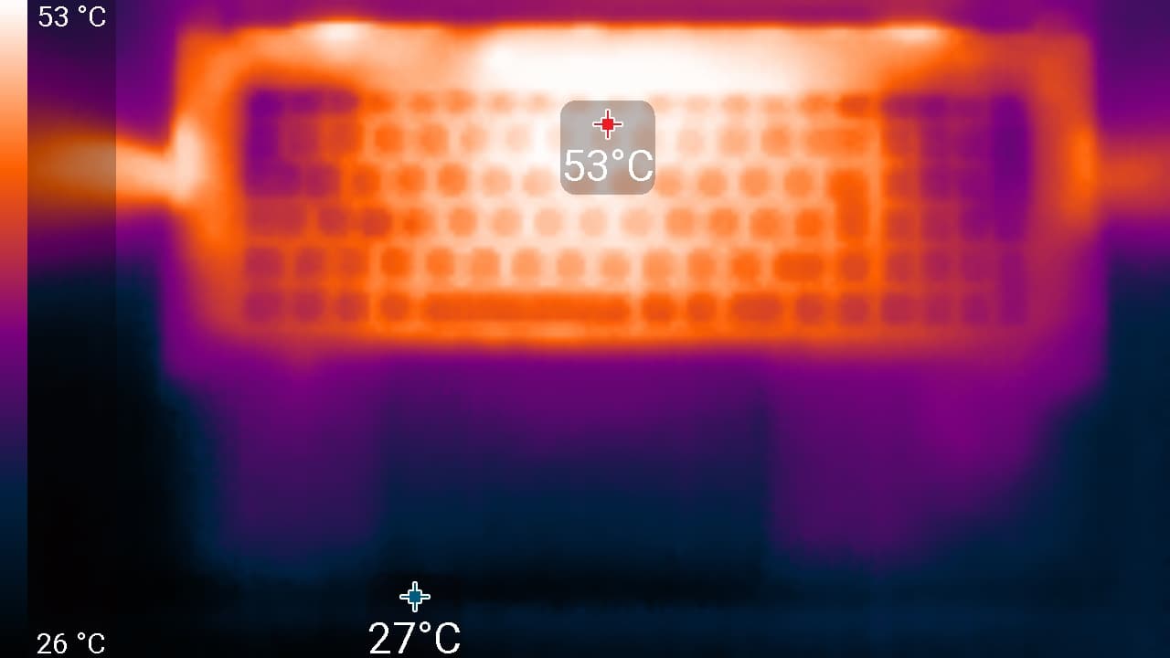 Внутренний объем ноутбука использован для целей охлаждения с максимальной эффективностью, и движение воздушных масс в трактах происходит одновременно в шести направлениях: относительно холодный забортный воздух поступает двумя потоками через отверстия в днище, а выброс горячего производится вентиляторами через четыре радиатора и их решетки (две назад, направо и налево).