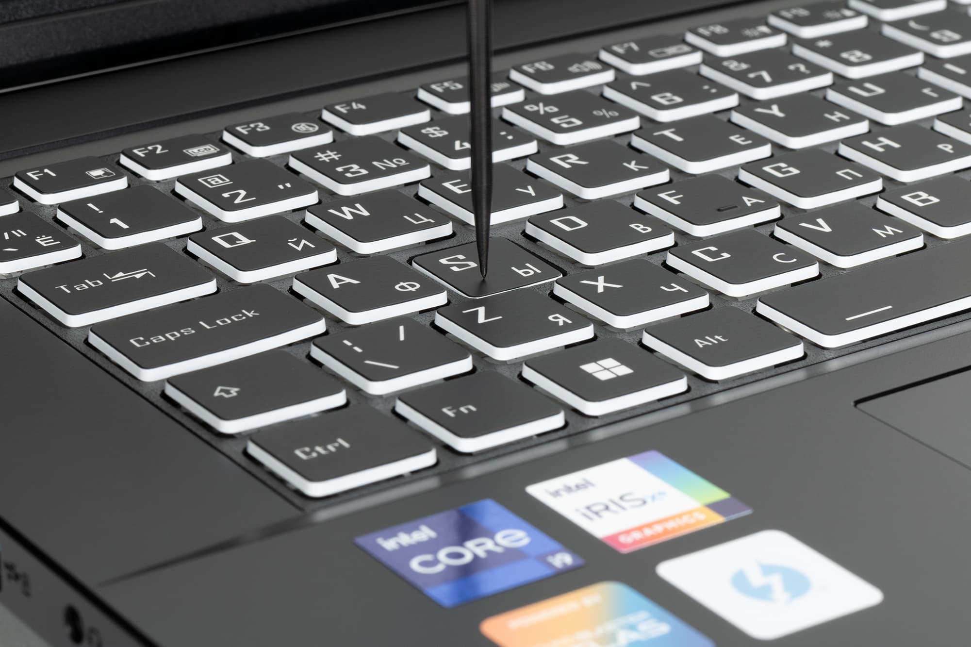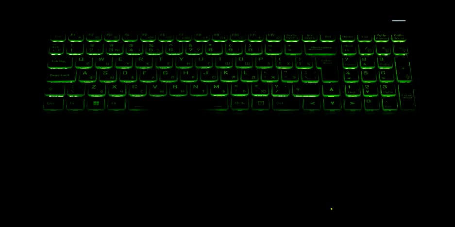 Клавиатура снабжена подсветкой с четырьмя уровнями по яркости (пятое состояние — подсветка выключена). Переключение между ними производится повторными нажатиями аккордов Fn и +/- на цифровом блоке. Подсвечиваются сами символы на клавишах и их контуры. Зона подсветки под каждой клавишей видна при отклонении от клавиатуры, но светится мягко и не раздражает. Распределение света позволяет видеть символы русской раскладки.