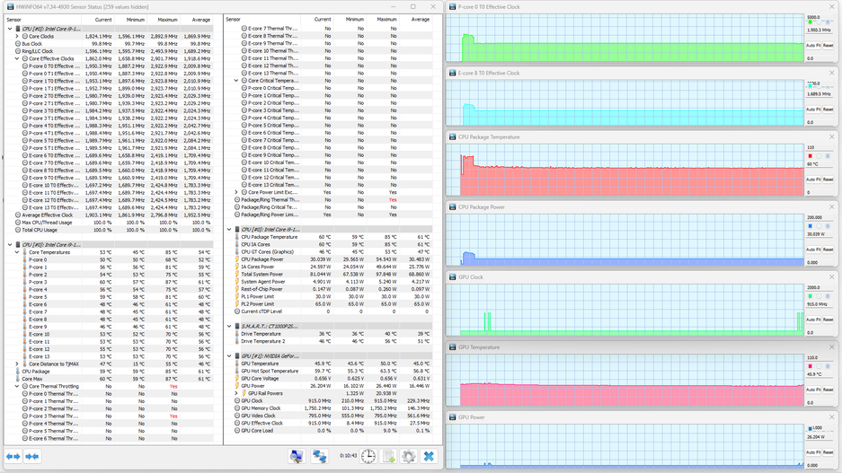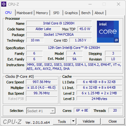 | Процессор | Intel Core i9-12900H Alder Lake-H 682: 6×P-ядер/12 потоков, 2,5 (5,0) ГГц + 8×E-ядер/8 потоков, 1,8 (3,8) ГГц; TDP 35—45 (115) Вт* | |