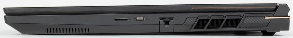 Справа расположены картовод для microSD (TransFlash), порт USB Type C, коннектор RJ-45 для подключения кабеля Ethernet (UTP) и боковая решетка выходного тракта системы охлаждения.