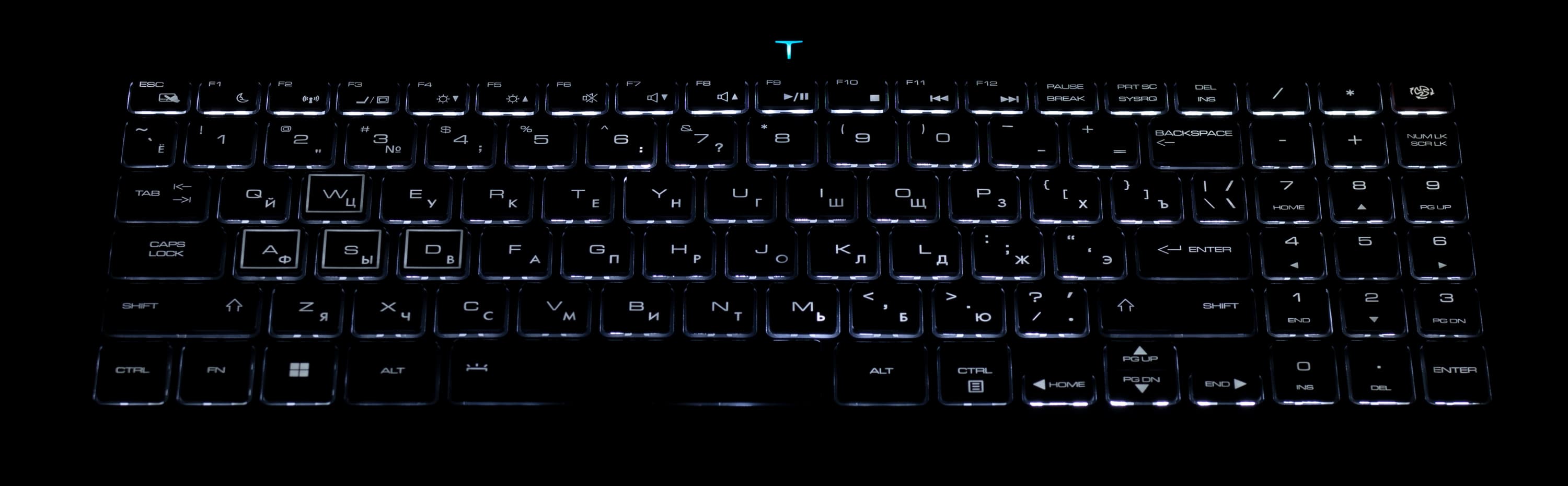 "Игровые" клавиши W, A, S, D выделены белыми рамками.