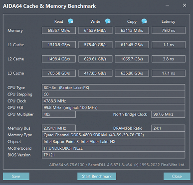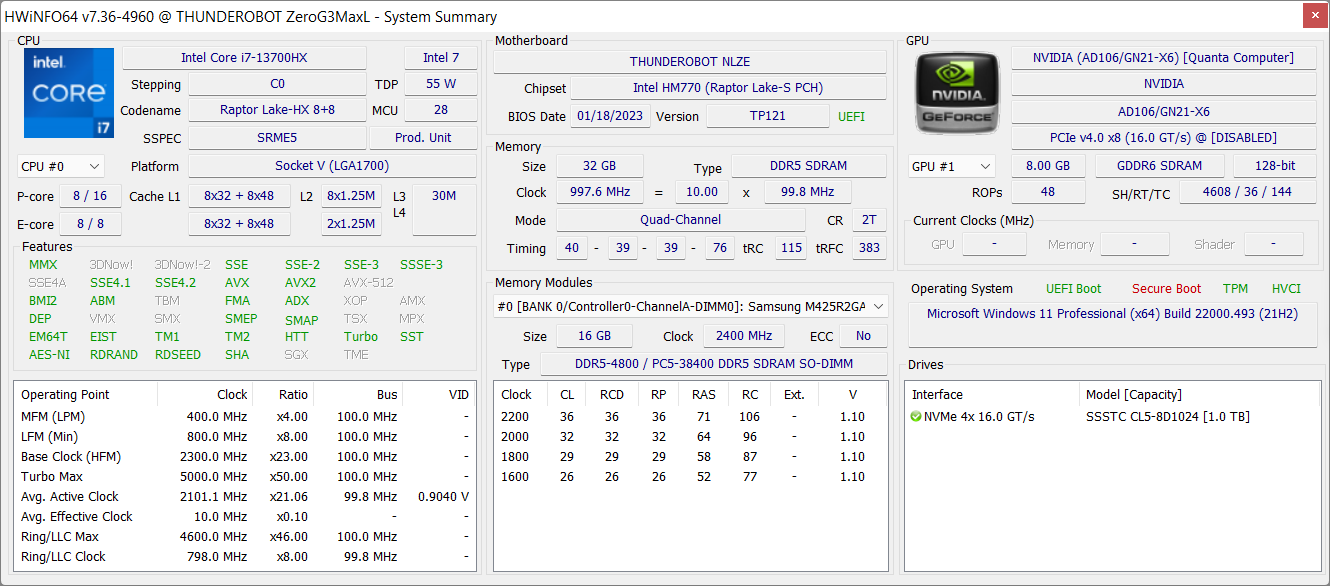 Как уже отмечалось, в качестве оперативной памяти Thunderobot Zero G3 Max L использованы два модуля SO-DIMM DDR5-4800 Samsung, в то время как у Thunderobot Zero G3 Max такой модуль был один.