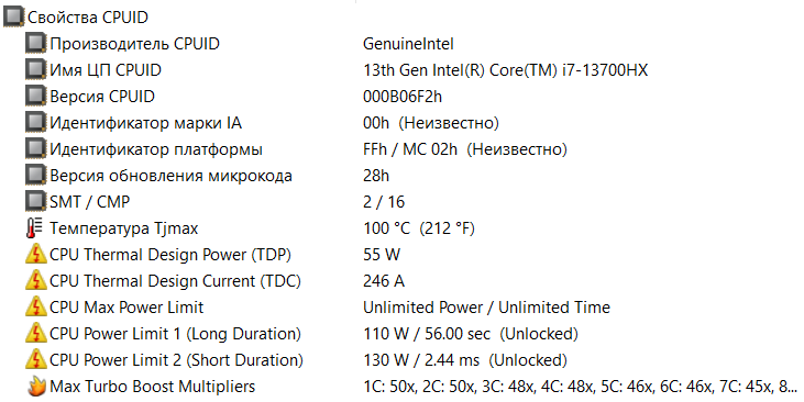 | Процессор | Intel Core i7-13700HX (8+8 ядер/24 потока, до 3,7/5,0 ГГц, 45—157 Вт) | |