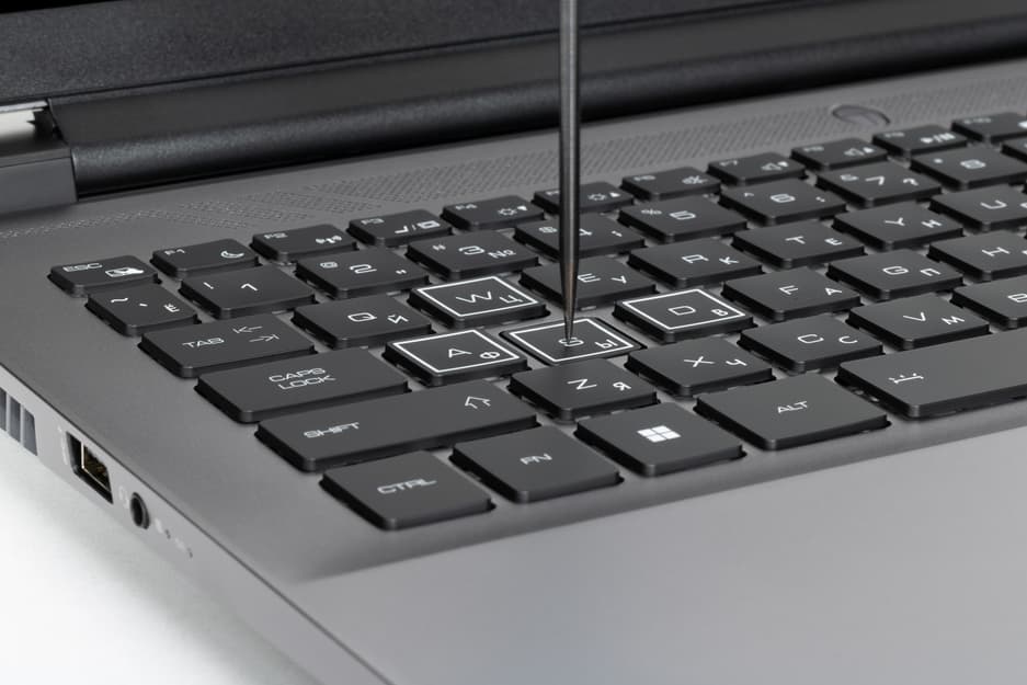 Чтобы снять нижнюю крышку, надо удалить 11 винтов, один из которых заклеен стикером, но в компании нас заверили, что при необходимости (например, чтобы добавить второй SSD) её можно снять без негативных последствий в плане гарантии.