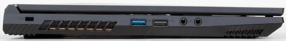 Слева – порты USB3.2 Gen1 Type-A и USB2.0 Type-A, а также раздельные "миниджеки" для микрофона и наушников. Ближе к задней части находится отверстие кенсингтонского замка.