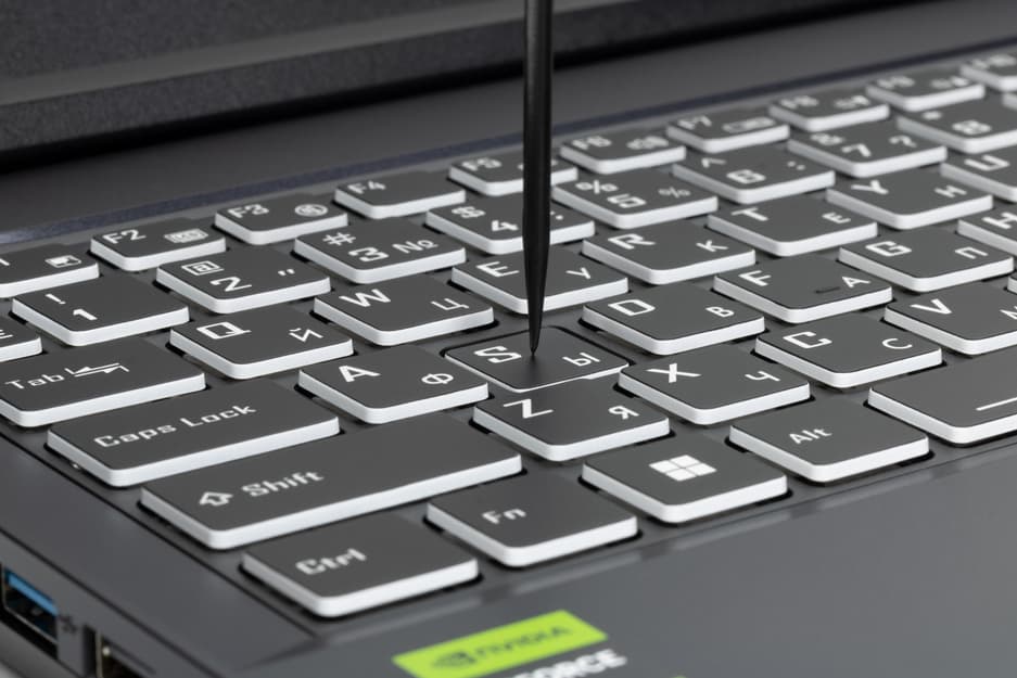 Большинство клавиш имеют чуть уменьшенный по сравнению с обычным для ноутбуков размер 14,8×14,8 мм, функциональные ещё поменьше (13,3×9,8 мм), левая Shift шире правой, а Enter довольно большая – 33×14,8 мм. Все четыре клавиши со стрелками имеют нормальный размер.