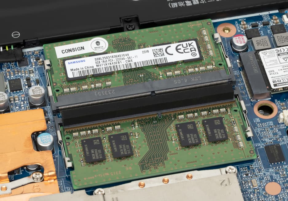 В качестве оперативной памяти использованы два модуля DDR4-3200 Samsung M471A1K43EB1-CWE по 8 гигабайт в слотах SO-DIMM.