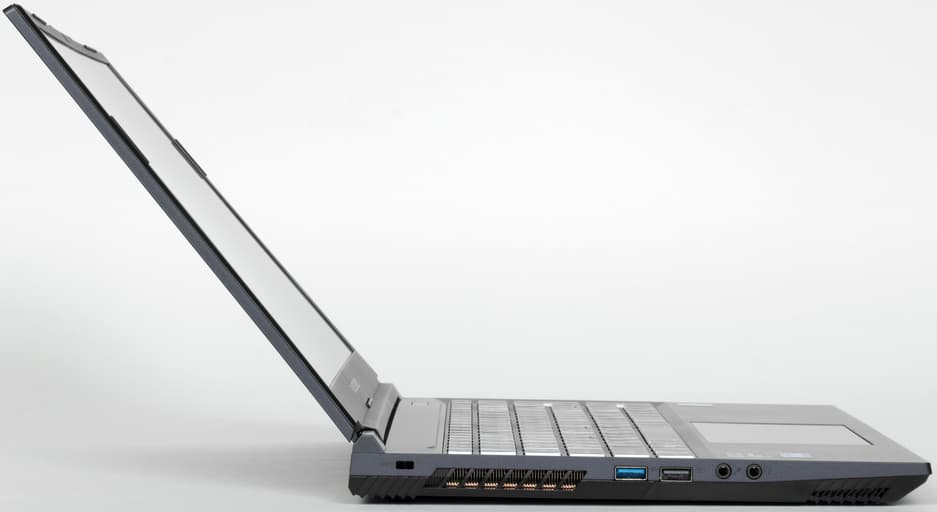 Наши измерения показали вполне типичную для игровых ноутбуков толщину корпуса – 25,8/28,0 мм спереди и 27,1/30,5 мм сзади (без ножек/с ножками).