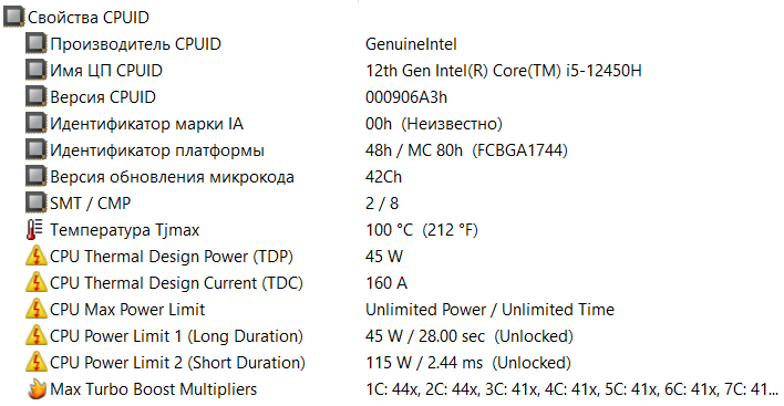| Процессор | Intel Core i5-12450H (4+4 ядер/12 потоков, до 3,3/4,4 ГГц, 35—95 Вт) | |