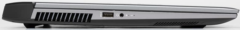 Слева – порт USB3.1 Gen2 Type-A, комбинированный миниджек для аудиогарнитуры и два индикатора: один отображает дисковую активность, второй горит белым при включении и медленно мигает в режиме сна (вот только при нормальном расположении оператора все эти индикаторы не видны). Порт USB-А помечен значком молнии, что означает возможность подключения к нему устройств для зарядки (в том числе от «спящего» ноутбука), но максимальный допустимый ток нигде не обозначен.