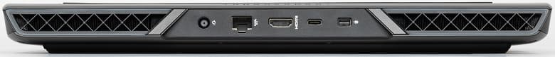 На заднем торце имеются гнездо питания, полноразмерные порты RJ-45 для проводной сети и HDMI, Thunderbolt 4 Type-C и Mini-DP.