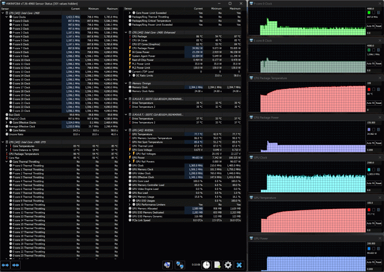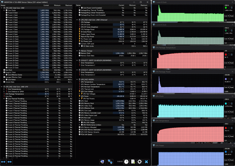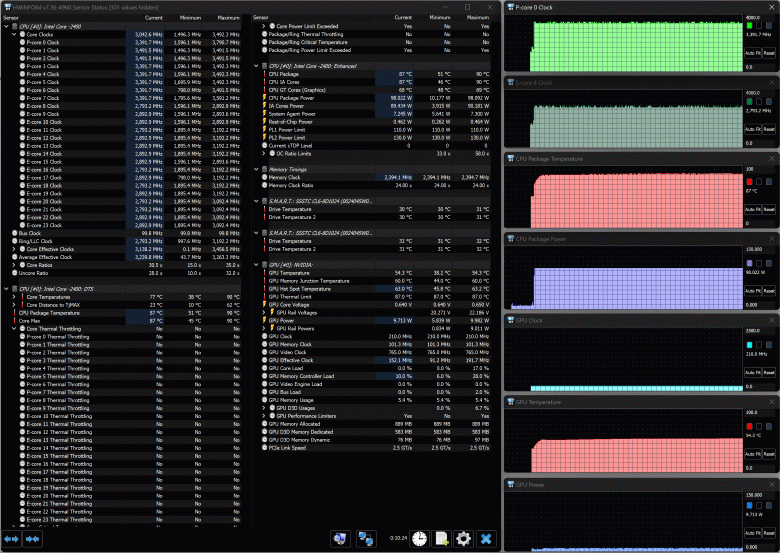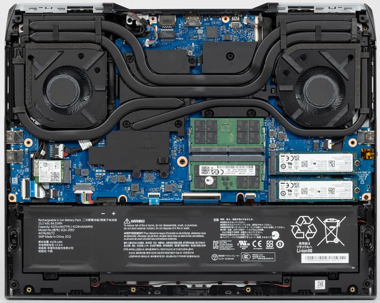 - Maibenben X639 c Intel Core i9-13900HX (8+16 ядер/32 потока, до 5,4 ГГц, TDP 55-157 Вт), NVIDIA GeForce RTX 4080 Laptop c 12 ГБ GDDR6, 32 ГБ DDR5-4800, 1 ТБ SSD Kingston PCIe 4.0 x4 (результаты без использования внешней СЖО).