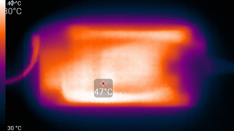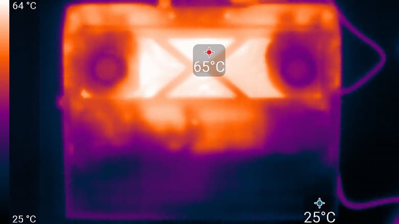 Справа и слева на заднем торце корпуса, а также на боковых кромках имеются решётки, через которые система вентиляции выбрасывает нагретый воздух. Подогрева нижней части экрана при этом не происходит, поскольку он немного выдвинут вперёд относительно заднего края корпуса.