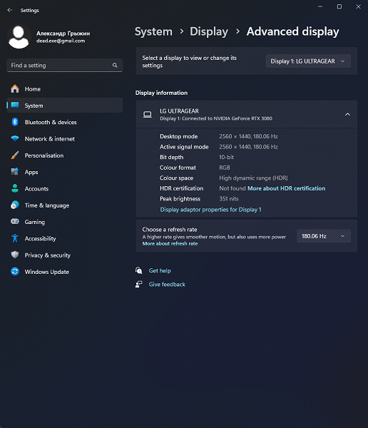 - Частота обновления до 180 Гц в 10-битном (8 бит + FRC) режиме, в том числе при активном HDR