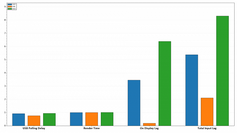 Также мы определяли полную задержку вывода от переключения страниц видеобуфера до начала вывода изображения на экран. В итоге при подключении по DP задержка вывода изображения в случае сигнала 2560×1440 и 180 Гц составила порядка 3,5 мс – на уровне лучших представителей класса. Задержка минимальная и точно не будет ощущаться.