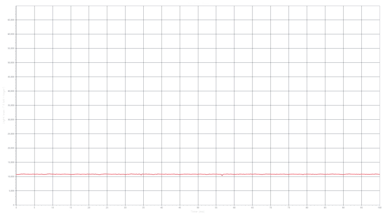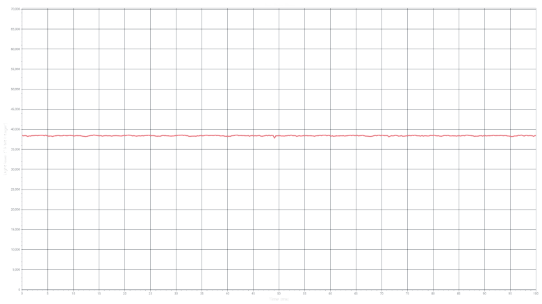 На любом уровне яркости модуляция подсветки отсутствует, что исключает видимое мерцание экрана. Для тех, кто привык распознавать знакомое сокращение, уточним: ШИМ отсутствует, монитор является Flicker-Free-подобным. В доказательство этому приведены графики зависимости яркости (вертикальная ось) от времени (горизонтальная ось) при различных значениях настройки параметра Brightness в настройках меню монитора.