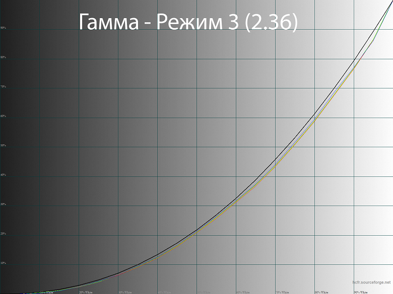 При необходимости быстро усилить контраст изображения можно переключить монитор в режим Гамма 3, а при желании снизить контраст – активировать Гамма 1. Похоже, что производитель ориентировался на три типичных значения гаммы: 2.0, 2.2 и 2.4.