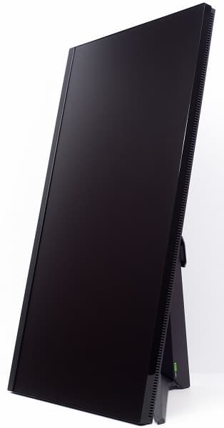 Производитель не погнался за уменьшением толщины, что обеспечило корпус монитора достаточной жесткостью. Снизу и сверху есть специальные вентиляционные прорези для притока воздуха и лучшего охлаждения встроенной начинки устройства.