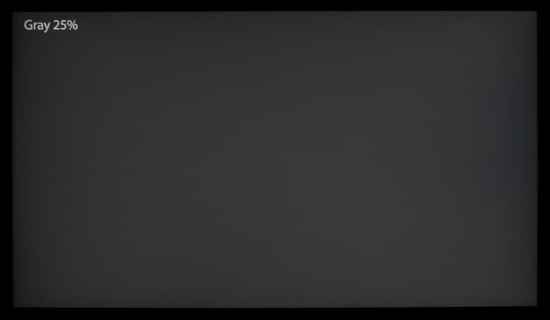 В первом случае ничего нового мы не увидели – "чёрное поле" с четырьмя высветленными краями экрана с ярко выраженными различающимися паразитными оттенками. После же отдаления перед нами предстала реальная равномерность подсветки конкретного экземпляра монитора от LG. В этом случае никаких явных дефектов мы не выявили – равномерность чёрного находится на достаточно высоком уровне, что, к примеру – редкость для многих современных представителей лагеря "новых китайских" брендов.