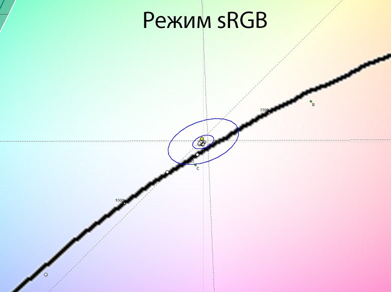 Лишь в режиме для чтения баланс съезжает в сторону с тёплыми оттенками, но всё еще без паразитных сдвигов. В sRGB же всё просто идеально, а в случае необходимости производитель сохранил для данного профиля не только возможность регулировки яркости, но и цветовой температуры в ручном режиме – большая редкость, как среди игровых моделей, так и профессиональных.