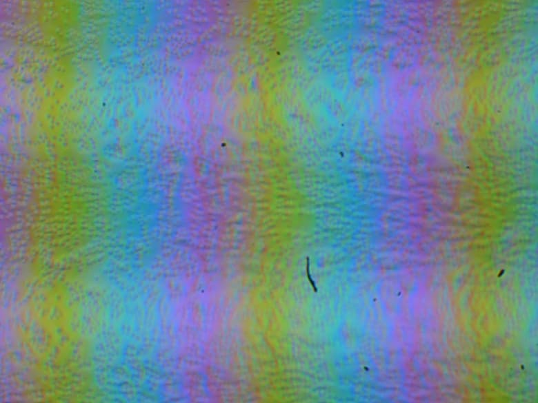 Зерно этих дефектов в несколько раз меньше размеров субпикселей (масштаб этих двух фотографий примерно одинаковый), поэтому фокусировка на микродефектах и «перескок» фокуса по субпикселям при изменении угла зрения выражены слабо, из-за этого нет и «кристаллического» эффекта.