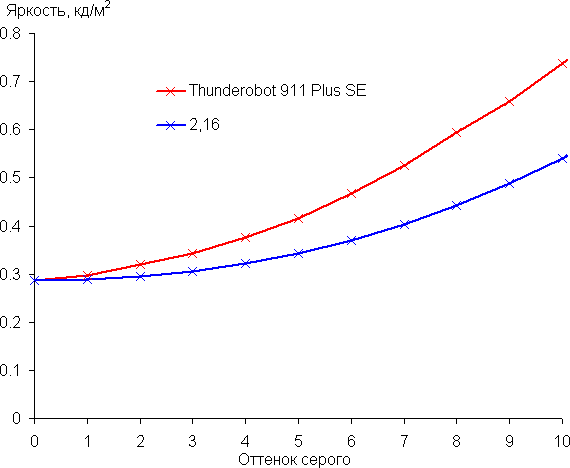 | Яркость черного поля | 0,29 кд/м² | −11 | 10 |