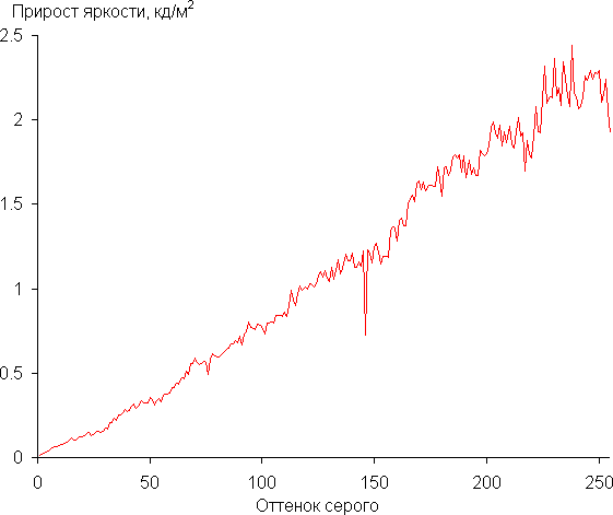 Время отклика при переходе черный-белый-черный равно 15 мс (8 мс вкл. + 7 мс выкл.), переход между полутонами серого в сумме (от оттенка к оттенку и обратно) в среднем занимает 20 мс. Матрица быстрая, но разгона в явном виде нет. С нашей точки зрения, скорости матрицы достаточно для динамичных игр.