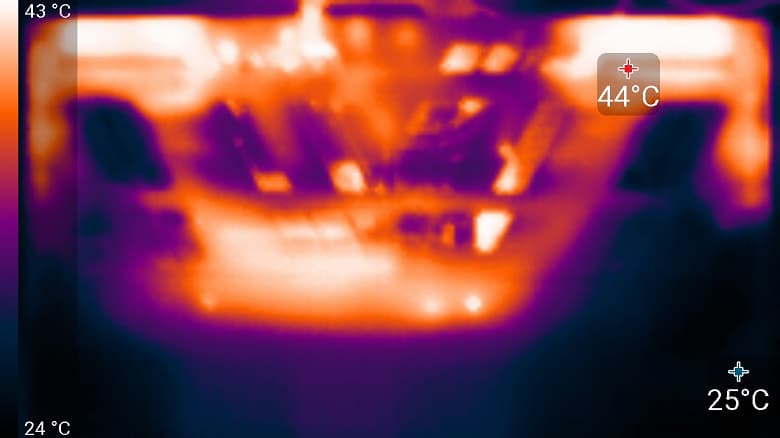 Справа и слева на заднем торце корпуса, а также на боковых кромках имеются решётки, через которые система вентиляции выбрасывает нагретый воздух. Заметного подогрева нижней части экрана при этом не происходит.