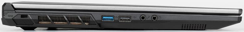 Слева – порты USB3.2 Gen1 Type-A и USB2.0 Type-A, а также раздельные "миниджеки" для микрофона и наушников. Ближе к задней части находится отверстие кенсингтонского замка.