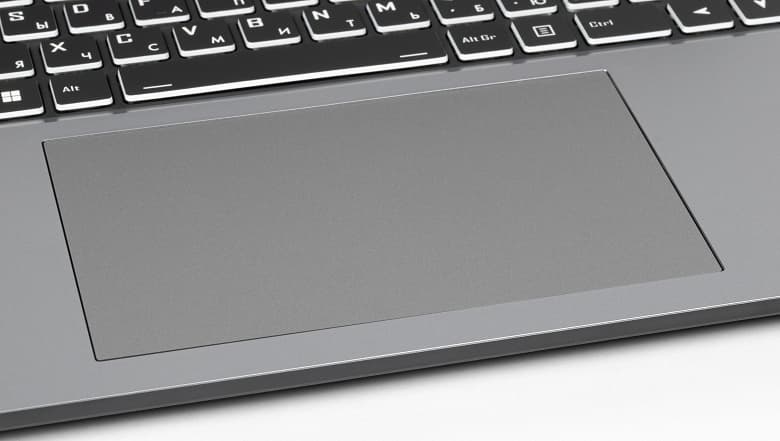 Тачпад большой: 151×91 мм, его поверхность слегка заглублена. Выделенных клавиш нет, но левый и правый ближние его края вполне могут работать как соответствующие кнопки мыши. Особых претензий к нему во время работы у нас не возникло, но при необходимости отключить и снова включить его можно сочетанием клавиш.