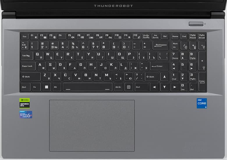 Конечно, ноутбук Thunderobot 911 Plus SE не относится к игровым аппаратам высочайшего уровня, однако цена у него достаточно демократичная, а набор потребительских качеств приемлемый: IPS-экран 17,3" с разрешением 1920×1080 и частотой обновления 144 Гц (разве что запас яркости маловат: до 280 кд/м²), процессор Intel Core i5-12450H и дискретный видеоадаптер NVIDIA GeForce RTX 3050 Laptop, ОЗУ 16 ГБ DDR4-3200 в двух слотах SO-DIMM, неплохой накопитель NVMe SSD PCIe 4.0 x 4 на 512 ГБ с возможностью установки дополнительного SSD/HDD 2,5" SATA, видеовыходы HDMI и miniDP, четыре порта USB, из которых один Type-C (но без поддержки Thunderbolt, Power Delivery и вывода видео), современные (хотя и не "топовые") беспроводные интерфейсы Wi-Fi 6 и Bluetooth 5.2, а также проводной Gigabit Ethernet, клавиатура с разноцветной подсветкой, полноценным цифровым блоком и клавишами-стрелками нормального размера.