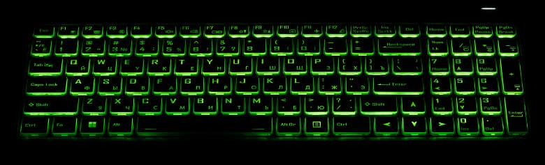Имеется трёхцветная подсветка, включение-отключение которой и выбор одного из четырёх уровней яркости производится сочетанием Fn и кнопок цифрового блока, на которые нанесены соответствующие символы. Подсвечиваются и символы (включая кириллицу), и края клавиш.