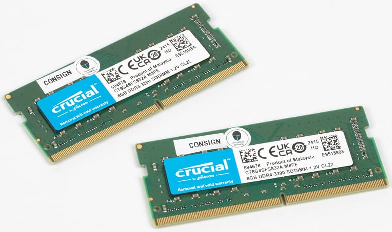 | Оперативная память | 16 (2×8) ГБ DDR4-3200 (2 × Crucial CT8G4SFS832A-M8FE) оба слота SO-DIMM заняты | |