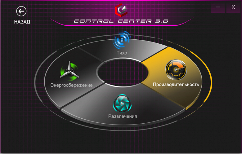 Для исследуемой модели в Control Center выбрали профиль "Производительность".