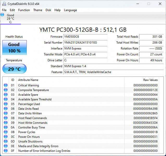 | Накопитель | SSD 512 ГБ YMTC PC300-512GB-B, M.2 2280, NVMe, PCIe 4.0 x 4 есть место под 2,5" SSD/HDD SATA 3.0 (7 мм) | |