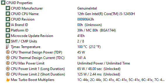 | Процессор | Intel Core i5-12450H (4+4 ядер/12 потоков, до 3,3/4,4 ГГц, 35—95 Вт) | |