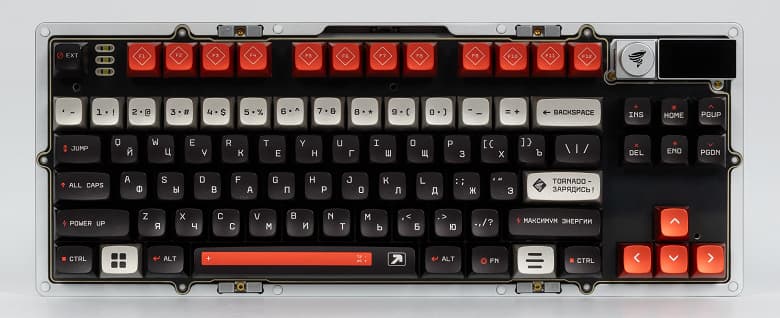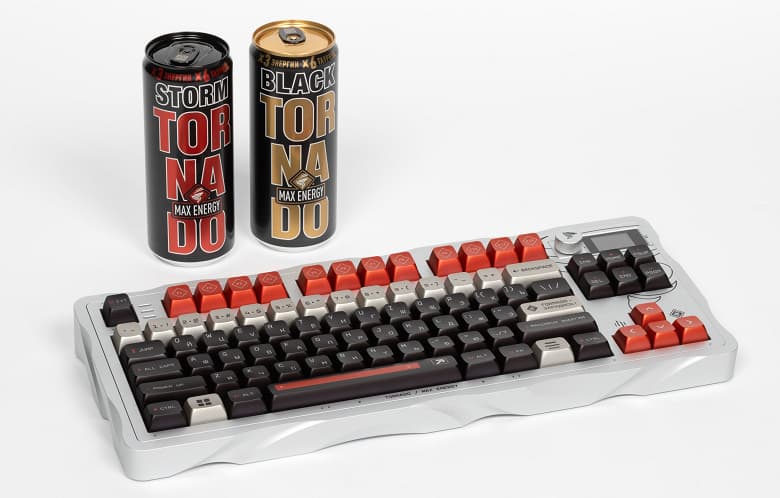 Специальную лимитированную серию клавиатур «Дарк Проджект» анонсировал в конце прошлого года совместно с брендом энергетических напитков Tornado Max Energy. Одна клавиатура вообще должна была стать уникальной, в том числе и по ориентировочной цене — устройство в титановом корпусе было оценено в 500 тысяч рублей. Естественно, оценка виртуальная — продажи не планировались, а сама клавиатура в комплекте с годовым запасом энергетика была разыграна в telegram-канале Tornado. Кроме главного призёра, были определены ещё пять счастливчиков, получивших аналогичные клавиатуры, но уже алюминиевые и с запасом напитка на месяц. На чём историю можно было бы считать и законченной ещё 15 декабря 2025 года, когда были подведены итоги, но на самом деле партия клавиатур оказалась немного большей, что позволило познакомиться с устройством и нам. И познакомить с ним всех желающих — тоже.