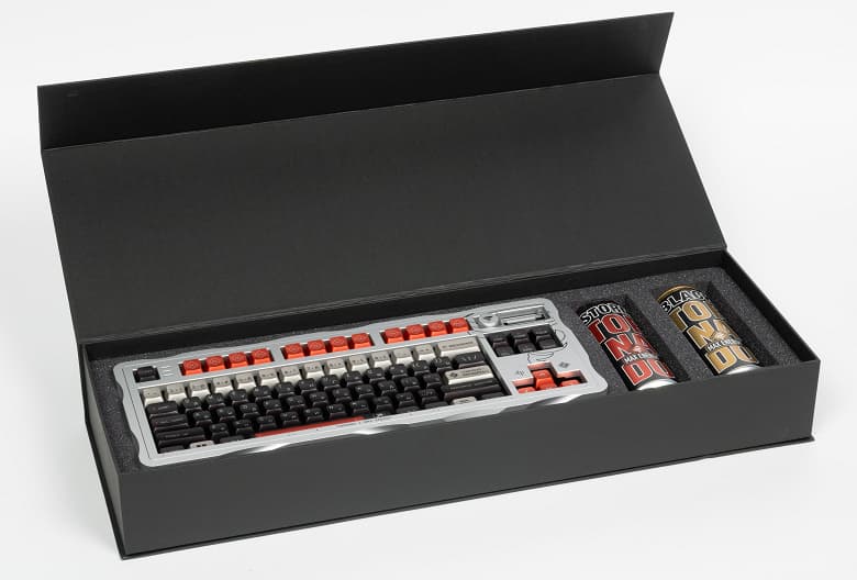 В большой коробке уложены сама клавиатура и пара банок Tornado Max Energy.