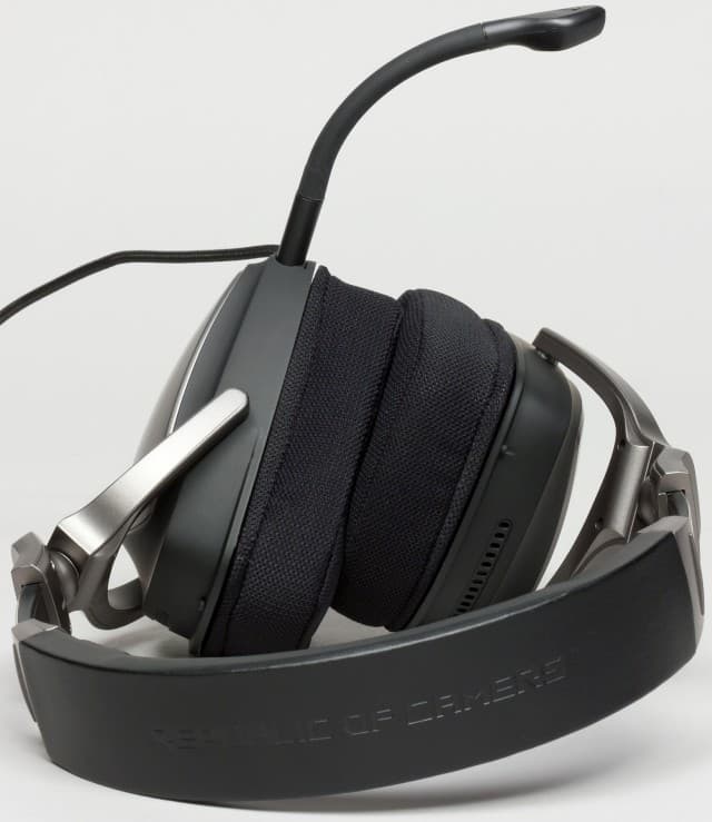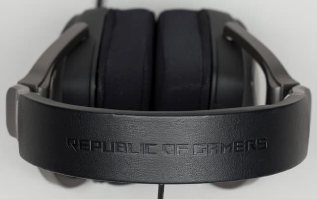 Основанием оголовья является металлическая пластина, обшитая мягкой синтетической кожей. Внутренняя часть оголовья снабжена мягким наполнителем, обеспечивающим комфортное прилегание к голове слушателя. На внешней стороне обшивки оголовья выдавлено Republic of Gamers.