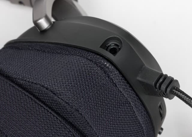 Кабель в текстильной оплётке со штекером 3,5 мм встроен в левую чашку снизу и является несъёмным. Перед ним расположено гнездо для подключения гибкой штанги с микрофоном. Это удобно, ведь если микрофон не нужен, его можно просто снять.