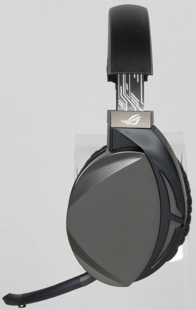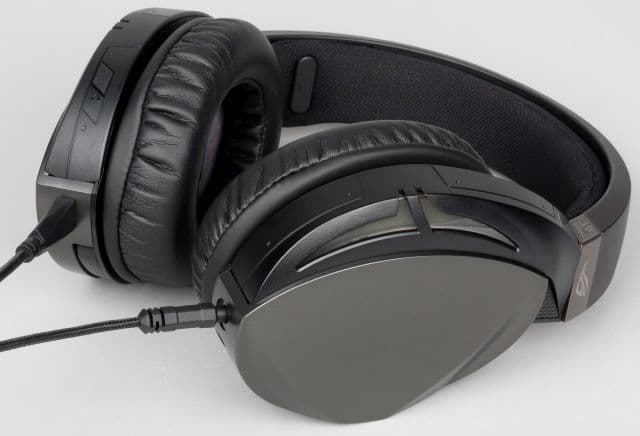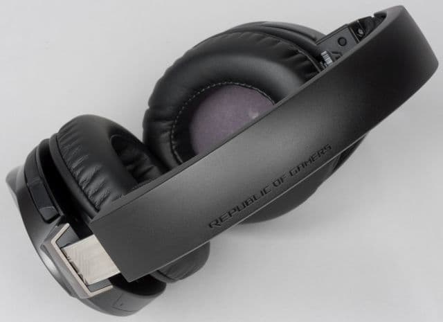 Каркас чашек выполнен из алюминия, внешняя сторона пластиковая, амбушюры овальной формы обшиты синтетической кожей, динамики прикрыты звукопроницаемой тканью, с нанесенным на нее логотипом ROG. Применены динамики Asus Essence диаметром 50 мм с неодимовыми магнитами.