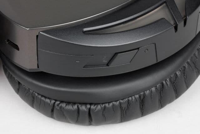 Снизу на левой чашке расположен порт micro USB для подключения гарнитуры к ПК. На противоположной от микрофона стороне находится кнопка активации виртуального многоканального звука Surround 7.1.