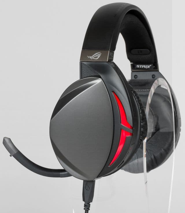 Каркас чашек выполнен из алюминия, внешняя сторона пластиковая, амбушюры овальной формы обшиты синтетической кожей, динамики прикрыты звукопроницаемой тканью, с нанесённым на неё логотипом ROG. Применены динамики Asus Essence диаметром 50 мм с неодимовыми магнитами.