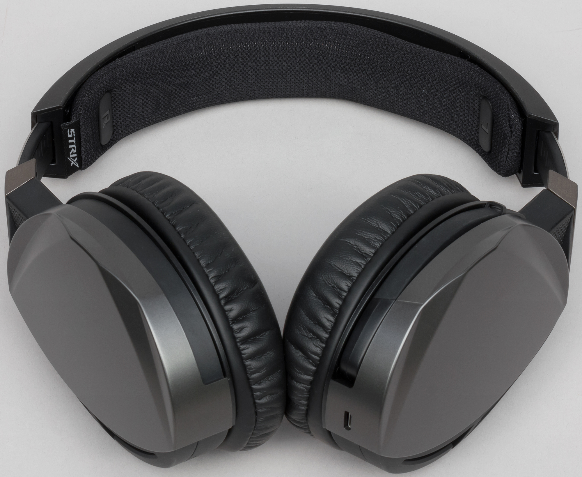 Чашки выполнены из чуть шершавого, приятного на ощупь пластика. В отличие от модели Strix Fusion 700, подсветка в декоративных прорезях отсутствует. Боковые панели чашек выполнены из матового серого пластика. Модель лишилась подсветки, однако при этом боковые панели стали гораздо более устойчивыми к отпечаткам пальцев. Боковая панель на левой чашке также является сенсорной панелью, с помощью которой можно управлять воспроизведением и менять громкость.