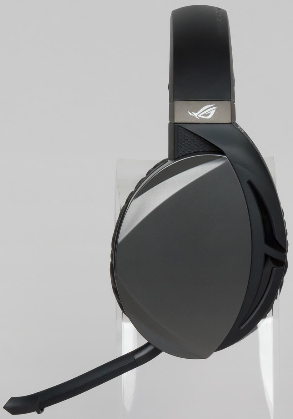 Беспроводная игровая гарнитура, отличающаяся отсутствием задержки при передаче звука, надёжной конструкцией, динамиками Asus Essence, гибридными амбушюрами ROG Hybrid и сенсорным управлением.
