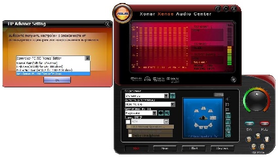Драйверы для операционных систем Windows XP/Vista/7 поставляются на диске, их установка проходит быстро, без каких бы то ни было затруднений и неожиданных сюрпризов. После этого на «Панели задач» появляется иконка Xonar Xense Audio Center. Если вы пользовались до этого продукцией Creative, то приятно удивитесь простоте и удобству решения ASUS.
